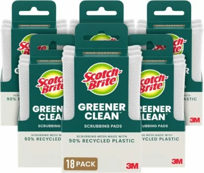 Snag this 18-Count Scotch-Brite Greener Clean Dish Scrubbers, Best for Safe, Effective Cleaning of Nonstick Pots and Pans, Glassware, China, Tubs & Tile, Dishwasher Safe on sale for 46% off.