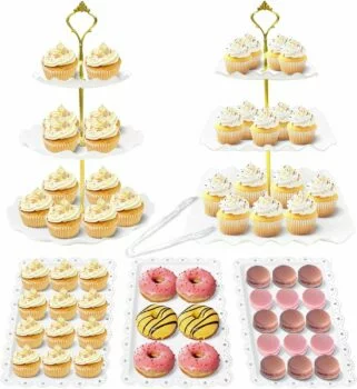 Snag this 6 Pcs Dessert Table Display Set with 2 Pcs 3 Tier Cake Stand, 3 Pcs Dessert Trays and 1 Tongs on sale for 50% off.