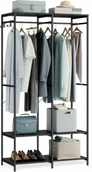 Snag this SONGMICS Clothes Rack, Iron and Wood Wardrobe Closet Organizer, Heavy Duty Garment Rack with Hanging Rods, Closet Shelves on sale for 65% off.