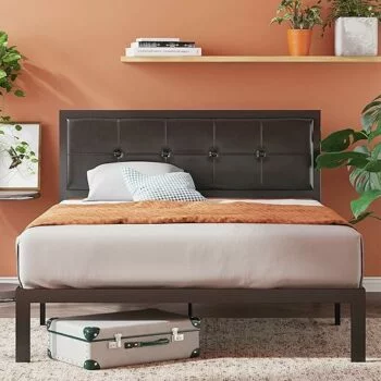 Snag this ZINUS Cherie Faux Leather Classic Platform Bed Frame with Steel Support Slats, Queen on sale for 50% off.