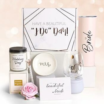 Snag this 7-Pc Bride To Be Gift Set (Wine Tumbler, Wine Glass, Candle, Jewelry Tray, Pen, Rose, & Card) on sale for 50% off.