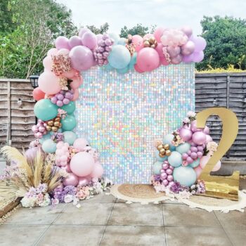 36-Panels Rainbow Silver Square Sequin Wall Panel Backdrop Shimmer Wall 9FTx4FT