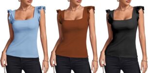 -53% $6.99 $14.99 Women’s Square Neck Ruffle Cap Sleeve Ribbed Knit Top Buy It Now Fashion Amazon 3 weeks ago