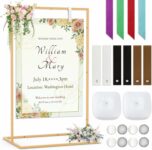 -50% $19.99 $39.99 50″ X 30″ Adjustable Wedding Sign Stand, Linen Sign Stand, Gold Welcome Sign Holder Metal Easel With 6 Leather Hanging Strap 2 Square Water Bag 4 Magnetic Counterweight 4 Ribbon Buy It Now Household Amazon 5 days ago